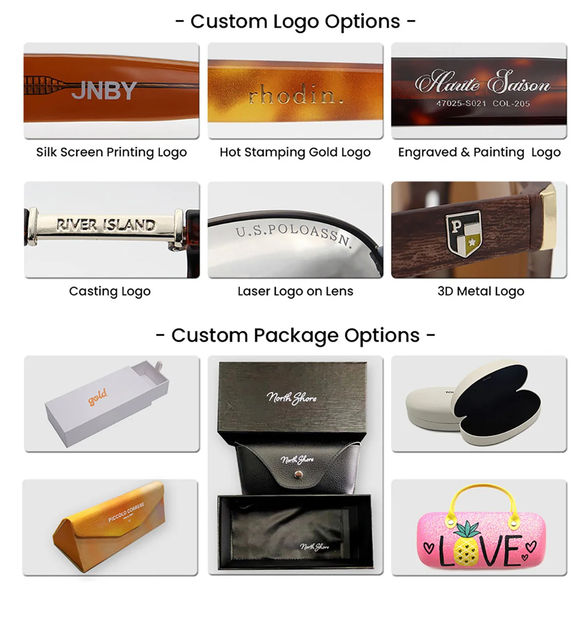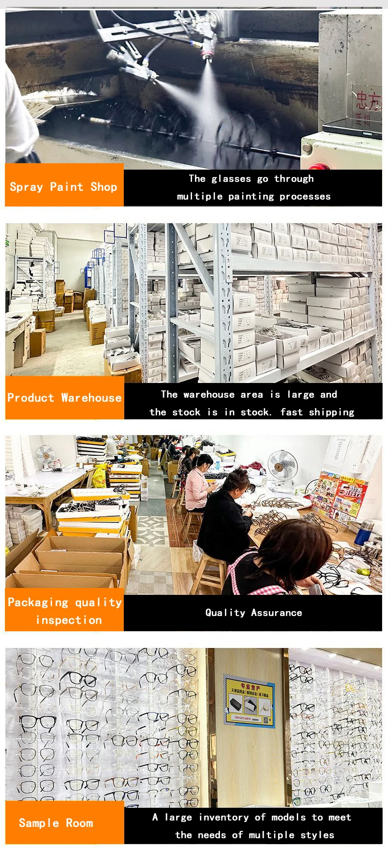 Q: Can you give me free samples?Yes, if you need samples, we will charge the sample fee according to your request, and the sample fee will be returned to you if you order from us.Q: How do I place an order?A: You can contact us via email for your order details, or place your order online.Q: What is the minimum order quantity? Can I mix styles and colors?A: For stock, 20 pieces, we can mix colors for you,Q: What is your delivery time?A: For inventory, the shipping time is within 3 days after we receive payment.Q: Can we print our own logo?A: Yes, of course, we can print, laser or engrave your logo on the frames, lenses and temples according to your requirements.Q: How do I pay you?A: After you confirm our PI, we will ask you for payment. T/T, PayPal, Western Union, etc.Q: What is the ordering procedure?A: First, we discuss order details, production details via email or TM. Then we will send you a PI for your confirmation. You will be asked for full payment or deposit before we go into production. After getting the deposit, we start processing the order. If we don’t have stock, we usually need 15-25 days. We will contact you for shipping details and balance payment before production is completed. After payment is settled, we start preparing shipment for you.Q: How do you take care of your customers when they receive defective products?Answer: Replacement. If there are some defective items, quality problems caused by non-manual damage, we will replenish them in the next order.Q: How do you inspect all goods in the production line?A: We have spot inspection and finished product inspection. We will inspect the goods when they enter the next step of production process.