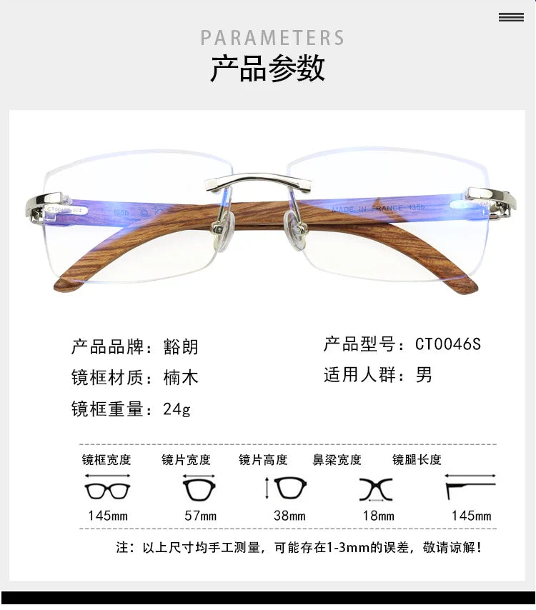 Satisfaction Guarantee: We stand by the quality of our Men’s Titanium Rimless Glasses with Wood Temples. If you’re not satisfied, return them within 7 days for a refund.