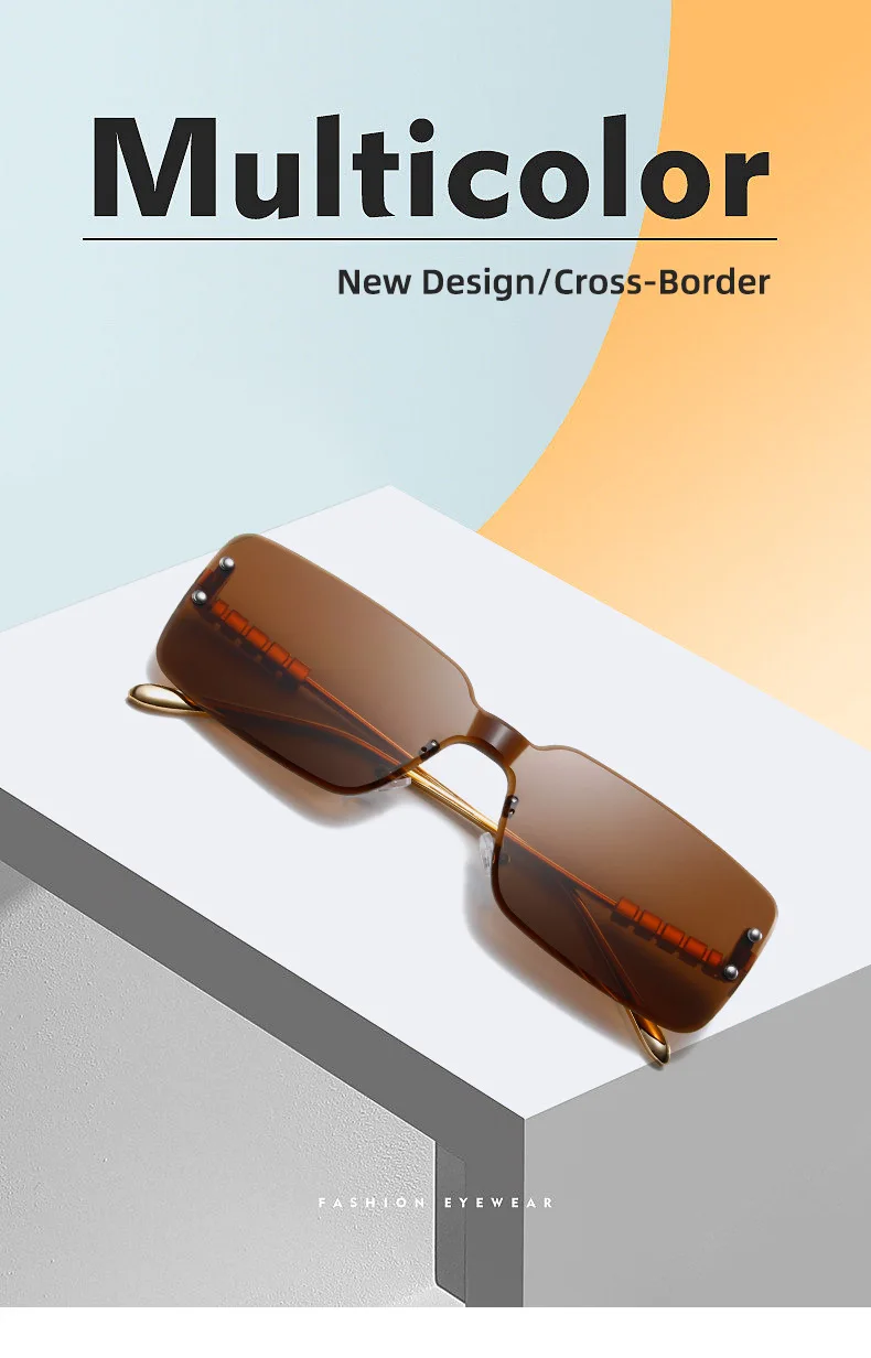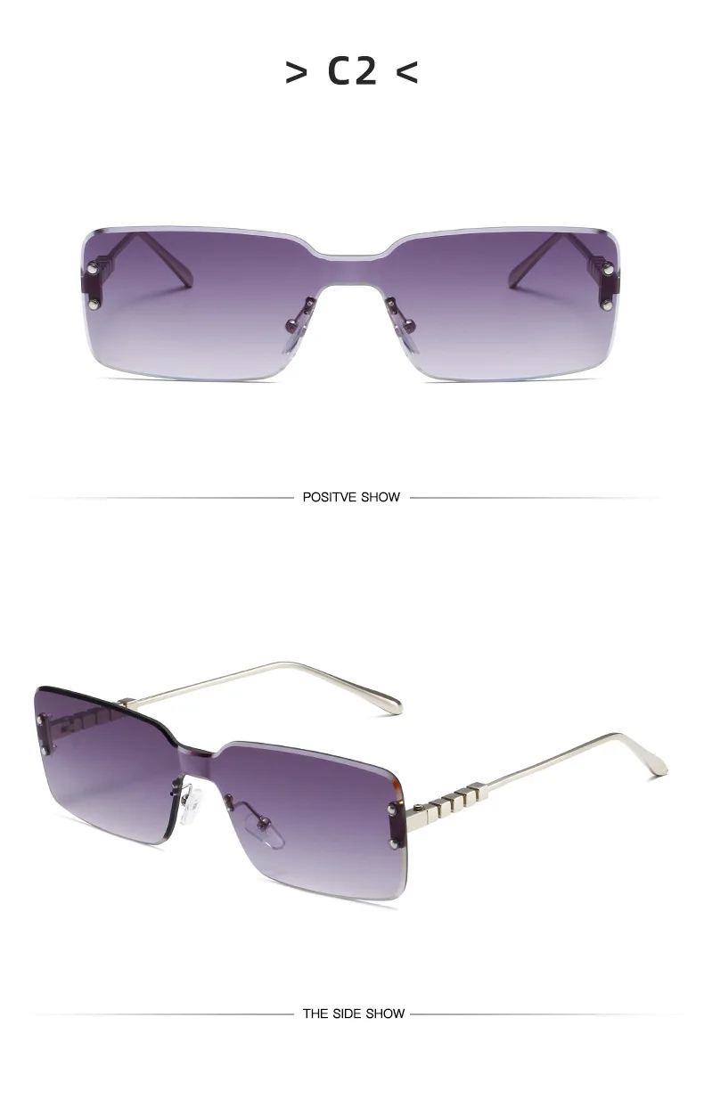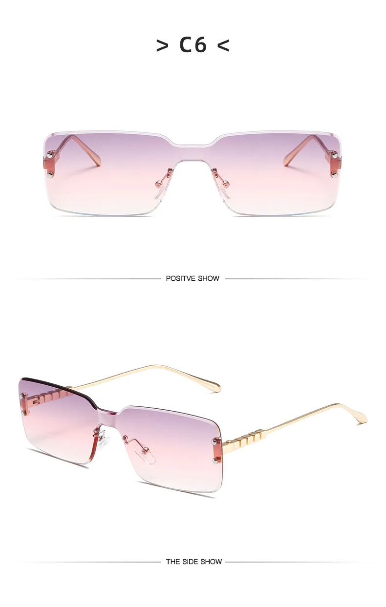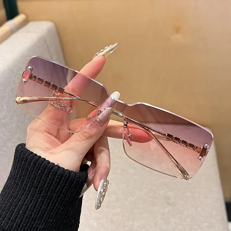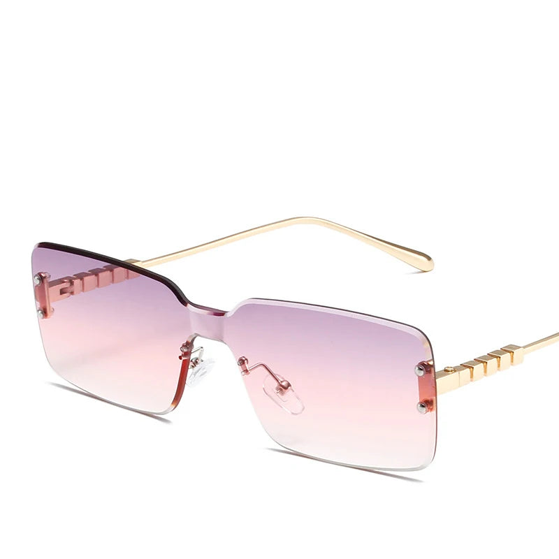 Unique Frameless Purple Women’s Luxury Sunglasses 2025 New High Quality Small Square Metal Gold Male Rimless Sun Glasses for Men