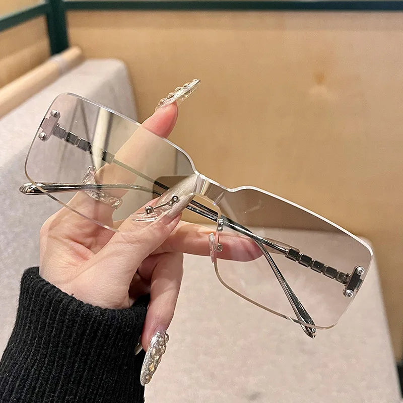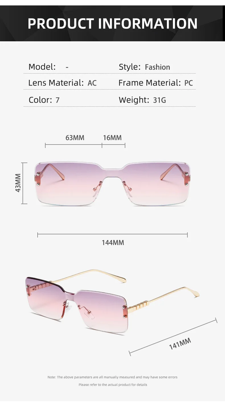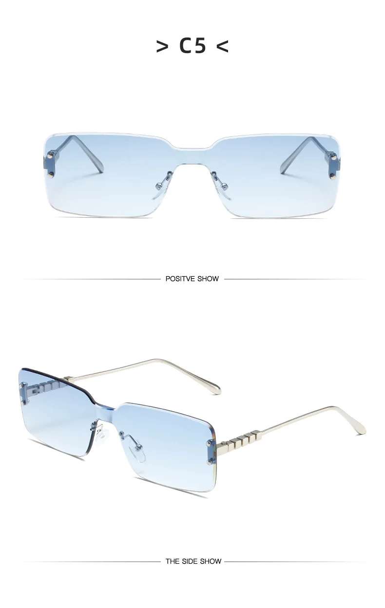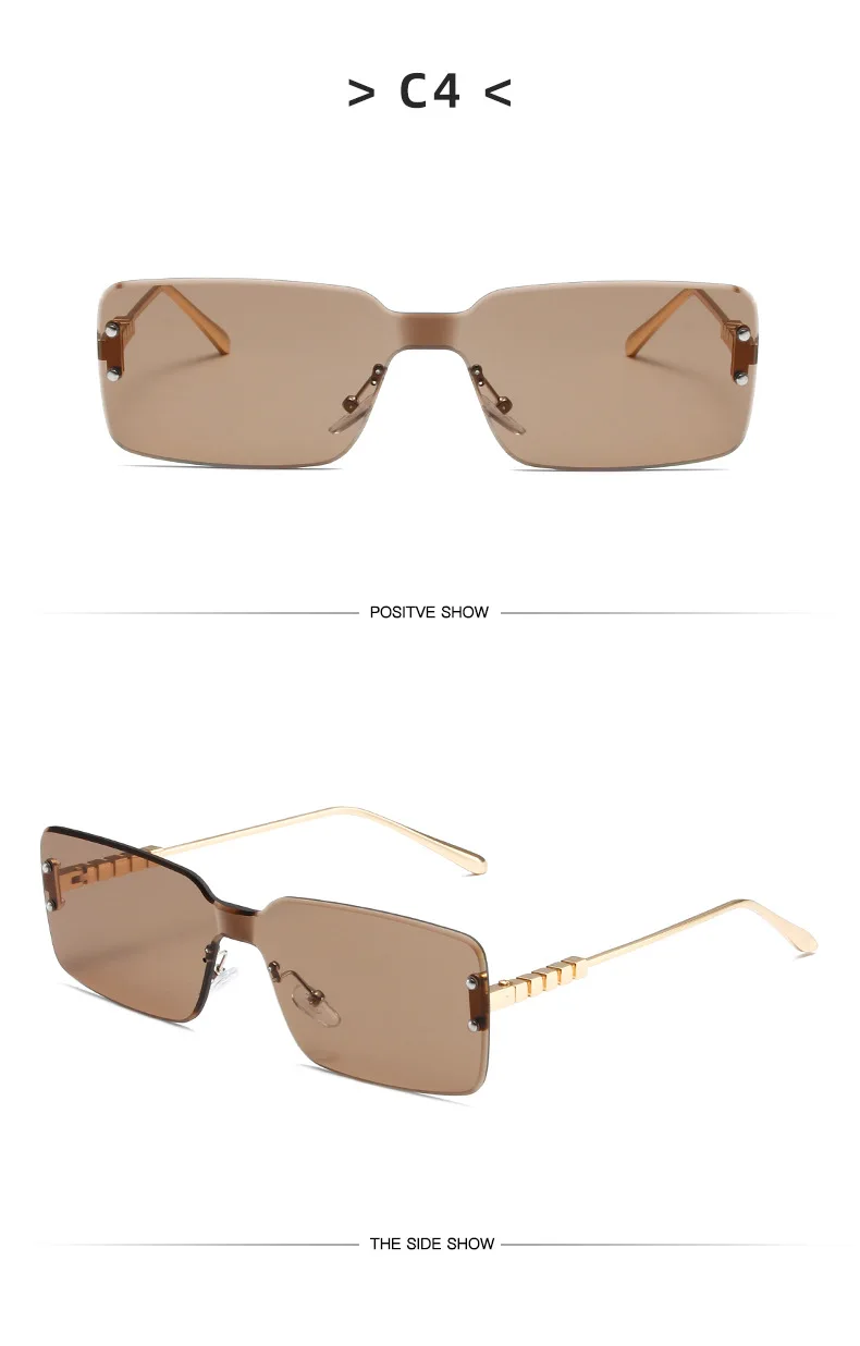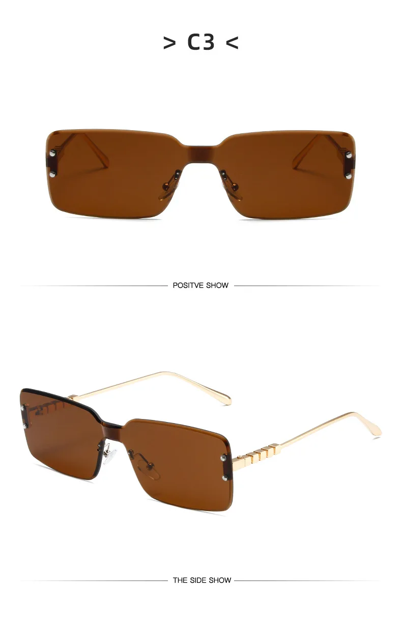 Unique Frameless Purple Women’s Luxury Sunglasses 2025 New High Quality Small Square Metal Gold Male Rimless Sun Glasses for Men
