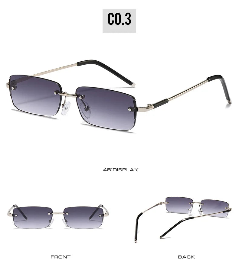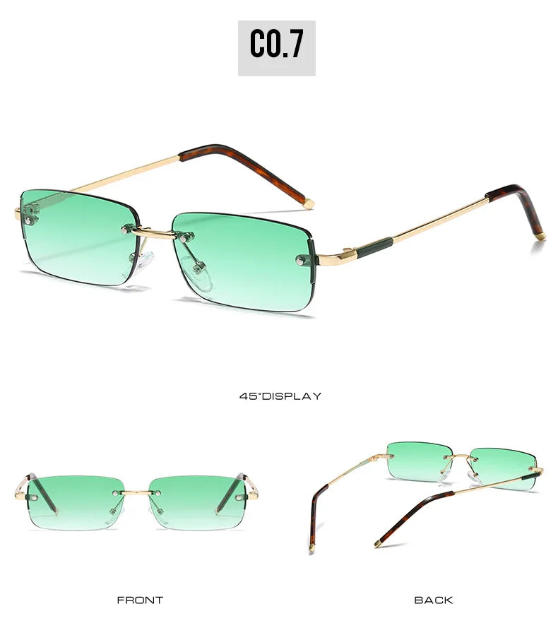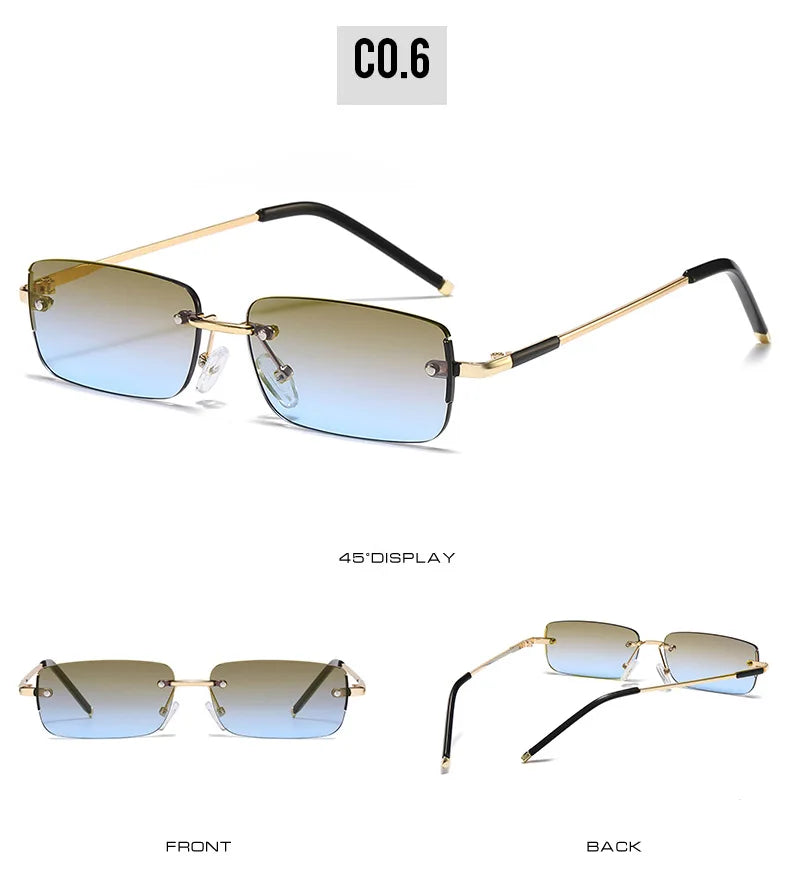 Available in a variety of vibrant colors, these rimless rectangle sunglasses are not just an accessory but a statement. Whether you’re dressing up for a day out or just adding a touch of flair to your everyday look, these sunglasses are your go-to choice.