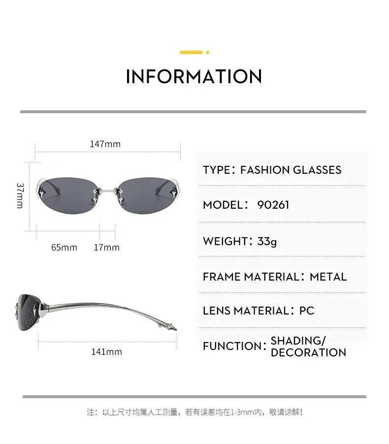 Designed for those who dare to be bold, these rimless, oval sunglasses are the epitome of style and sophistication. Whether you’re hitting the beach or strolling through the city, these sunglasses offer unmatched comfort and protection.