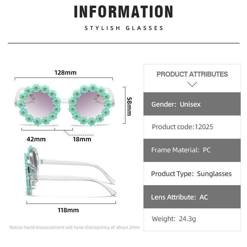 Designed with a durable white and yellow PC frame, these adorable round glasses combine UV protection with a fun floral design that kids love! Perfect for the beach, picnics, or everyday outdoor play, these sunglasses make fashion and protection go hand in hand.